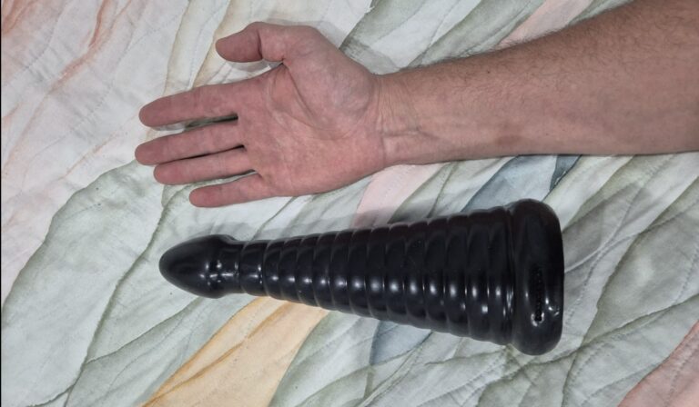 If you want something that will gradually stretch you out, then the Bit By Bit To a Stretched Butthole cone dildo is a unique choice. The ribbed design allows you to slide it inside yourself section by section while still having some control over how far you’re inserting it and being able to take breaks between sections. Now, our tester, Mark, is definitely not a beginner and he actually already owns the smaller version of this cone dildo. He noted that there wasn’t a big difference in size but that this version was slightly firmer. Therefore, it’s a bit more challenging in terms of depth and he would “only recommend it to those with more experience with big anal toys.” He also did note that he knot at the base quite challenging to overcome, since the jump in diameter is quite dramatic and the sphincter can’t adjust that easily. This is, of course, one of the downsides to this kind of texture. You work your way down in sections rather than having a smooth gradual increase. While this is a matter of preference, I highly recommend this cone dildo if you prefer the former. I appreciate that it’s made from non-porous silicone. This isn’t always the case with more extreme anal toys, so it’s nice guarantee that everything is 100% body-safe and easy to clean and even sterilize!