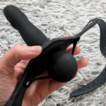 I chose the Bondage Boutique Silicone Gag with Dildo as the Test Winner of this review because it offers intensity as well as decent quality and body-safe materials. Our tester, Rae, really felt like this gag made her feel very submissive and humiliated (in a good way): “It’s impossible to have a cock attached to your face and a big ball in your mouth without feeling some pretty subby things so this is a very quick way of setting a scene and establishing who’s in charge!” The main con about this product is probably the sheer size of the ball gag. Rae said that “it felt huge to the point of discomfort” and is definitely an advanced-level toy for people who are experienced with large ball gags. If the ball is too large for your liking thrusting and vigorous face-riding will become difficult and uncomfortable, so make sure to check the size beforehand. The dildo itself has a dynamic design but is also quite firm and short: “You need to get in very close to your partner to achieve penetration and, if your partner prefers girthy toys, this dildo might not be enough.”