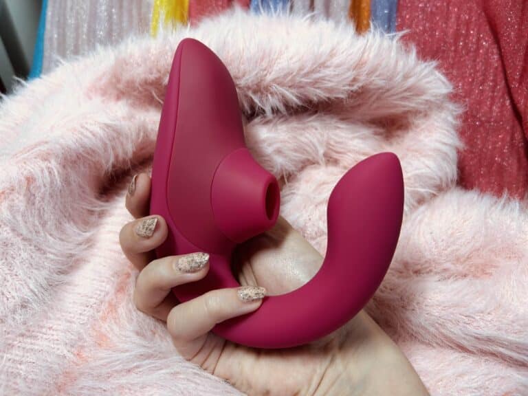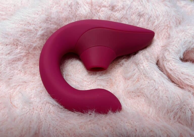 The Womanizer Blend has two motors with independent controls. It has three buttons, one of which I almost missed. On the opposite side of the air pulse nozzle are two raised, circular buttons: a plus sign and a minus sign. These can be used to turn the toy on and off, as well as change the intensity of the toy’s clitoral stimulation. Just below, there’s the subtle third button. This one is only distinguishable by its subtle diamond pattern and controls the vibration intensities and patterns of the penetrative portion. Ensure you familiarize yourself with the controls before starting, since the third button can be hard to track down without visibility!My Verdict: Lovely and Luxurious!